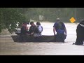 In Orange, Texas, about 30 miles east of Beaumont, residents of a retirement home surrounded by thigh-deep water were rescued by National Guardsmen and wildlife officers, who carried them from the second floor and put them aboard an airboat.
