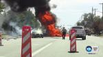 The crash sent flames and a plume of smoke into the sky, closing several blocks of the busy suburban street Tuesday afternoon.