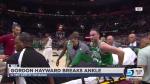 Warning: The video is not for the faint of heart. Hayward goes up for an alley-oop and lands awkwardly. Hayward is then seen grimacing, his foot twisted perpendicular to his leg. After several minutes on the floor, he is taken away on a stretcher.