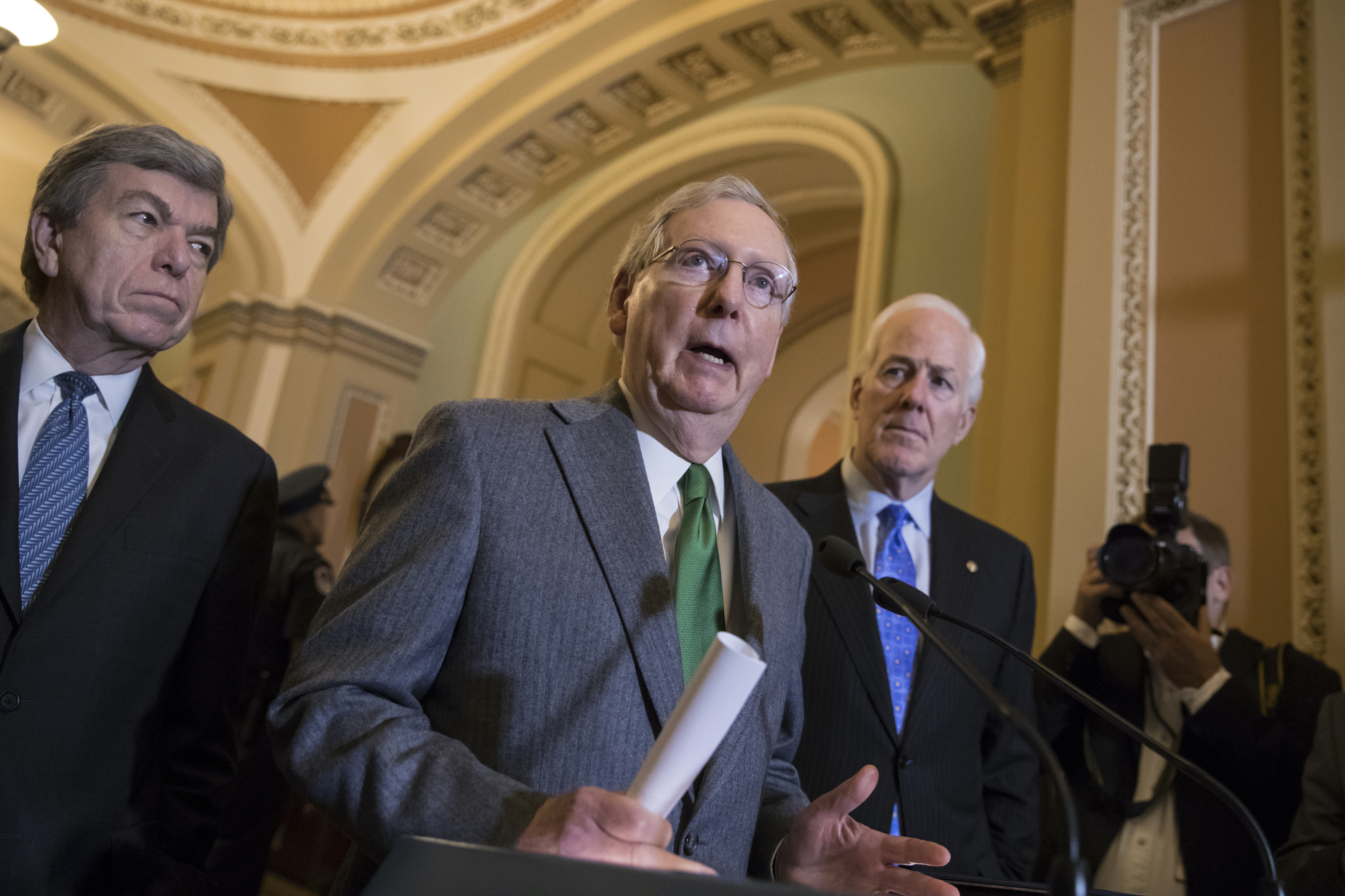Also Thursday, Politico reported that a new version of the House Republican tax overhaul bill does not include a repeal of the Obamacare individual mandate. President Donald Trump has pressed for the provision as a way to undo the Affordable Care Act and to help pay for tax cuts.
