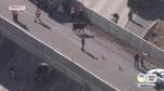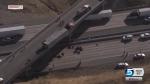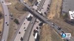 Cattle in the truck then fell from the overpass onto I-15 southbound. Troopers said they did not know how many cattle were killed in the crash. Images from KSL Chopper 5 showed about a dozen cows on the freeway below. Some of the cattle appeared to be dead and other cows were corralled by crews on scene.