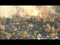 Aerial footage showed dozens of homes in one neighborhood burned to the ground and a large subdivision in jeopardy as embers blew about wildly. Burned-out cars sat on their wheel rims next to destroyed homes.