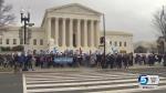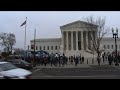 Protesters on both sides filled the sidewalk in front of the court shortly before the start of the argument.