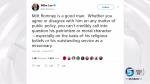 Sen. Mike Lee, R-Utah, also weighed in, tweeting: "Mitt Romney is a good man. Whether you agree or disagree with him on any matter of public policy, you can’t credibly call into question his patriotism or moral character — especially on the basis of his religious beliefs or his outstanding service as a missionary."
