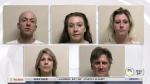 Six people — Larry Kameron Shoell, 29, Shauna Leigh Blevins, 25, Celeste Julia Blevins, 26, Susan Ellen Knight, 40, Tamera Jane Stubbs, 51, and Kimball Alan Millet, 58 — were arrested for investigation of possessing drugs and drug paraphernalia, according to the documents.