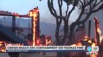 The blaze — known as the Thomas Fire — has destroyed more than 680 homes, officials said. It was just partially contained after burning more than 360 square miles (930 square kilometers) of dry brush and timber. The fire has been burning for more than a week.