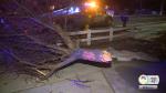 Several street signs were "taken out," a large tree was hit and a car crashed into the garage, knocking off the garage door and damaging a portion of the roof above the door, Hansen said.