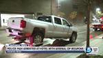 Police said the man was arrested and jailed for unlawfully carrying a weapon and trespassing. Senties said a trespassing charge would stem from the fact that the man refused to leave the hotel when told to do so.