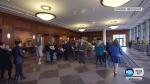 Guests passed through security screening as they enter the Conference Center through the west doors. Depending on the length of the line, they continued to a large auditorium and then were escorted on escalators to the third floor.