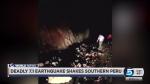 LIMA, Peru (AP) — A powerful earthquake struck off Peru's coast early Sunday, tumbling adobe homes in small, rural towns, killing at least one person and injuring dozens, officials said.