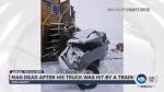 The man was dead when police arrived on scene after receiving a call about 8:30 a.m. that a train had hit a truck at about 8400 North and 5600 West, said Iron County Sheriff's Lt. Del Schlosser.