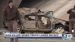 On Sunday afternoon, a man driving a Toyota Tundra was heading north on I-215 West when the car went off the freeway at the 3500 South off-ramp, jumped the ramp and crashed into a GMC Envoy that was traveling east on 3500 South, according to a statement from the Utah Highway Patrol.