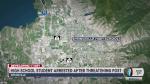SPRINGVILLE — A Springville High School student has been arrested on suspicion of making a terroristic threat after police say he sent a social media post that suggested a threat of violence at the school.