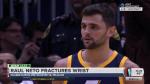 Jazz backup point guard Raul Neto suffered a fractured left wrist in the second quarter of the Jazz's game against the New Orleans Pelicans Sunday afternoon. He'll be re-evaluated in two weeks, according to the Jazz.