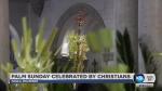 At the end of Mass, the pope and cardinals in red robes led a solemn procession clutching elaborately braided palm fronds as they walked through the throngs, followed by the papal blessing of palm fronds and olive branches.