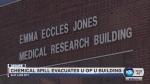 After the incident, the pair walked into the emergency room at the University of Utah Hospital, said Salt Lake fire spokeswoman Audra Sorensen. The Emma Eccles Jones Medical Research Building remained under evacuation late Tuesday as hazmat crews cleaned the third-floor laboratory where the spill took place.
