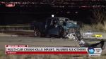 At the scene of the crash, a silver minivan could be seen on the road's shoulder with its front end smashed. The intersection was expected to be closed for hours as officers investigated, Rivera said.