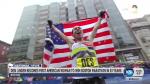 In Copley Square, Crowds only partly thinned and muffled by the weather greeted Linden with chants of "U-S-A!"