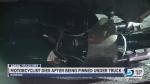 The motorcyclist, a 38-year-old man, was traveling east on 11800 South when a westbound pickup truck made a left-hand turn onto 3840 West in front of the motorcycle. The motorcycle then impacted the passenger’s side of the truck and became pinned underneath the vehicle along with the rider, Malm said.