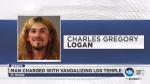Police learned that when the two temple workers grabbed Logan "to try to control him from preventing further damage … Charles placed (one worker) in a headlock causing a slight cut to (his) left ear," according to the charges.