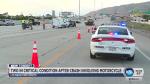 The crash happened in heavy traffic about 7 p.m. when the motorcycle came to a stop but the van behind it, which was towing a trailer, was unable to stop in time and hit the motorcycle, said Utah Highway Patrol Sgt. Nathan Croft. The male driver and female passenger, who were not wearing helmets, were thrown off the motorcycle and sustained serious head injuries.