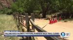 ZION NATIONAL PARK — A falling rock injured two visitors and forced the closure of the Riverside Walk trail in Zion National Park Sunday afternoon, officials said.