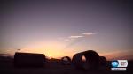 On June 21, as a glow slowly brightened on the eastern horizon, it revealed a small community of vehicles, tents and people, waiting for the morning edition of the biannual show. Spread out on the barren desert floor are four mysterious concrete tubes arranged in an "X" configuration that on one diagonal spans 86 linear feet.
