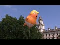 Up to 100,000 people massed in London for demonstrations against the president's visit. Marchers gathered in central London before walking through the center of the city to Parliament — where earlier the 20-foot (six meter) baby blimp hovered overhead. Many protesters used humor to convey their opposition. One sign read "Trump wears poorly tailored suits," another proclaimed "Overcomb Brexit." One man was selling rolls of "Trump toilet paper" emblazoned with a picture of the president.