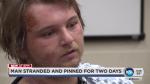 “I just want to say thank you. (They) got down in that truck right there with me, and it meant so much. They kept me calm all the way through it, and I’m so grateful,” he says.