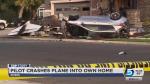The plane flew underneath nearby power lines and clipped the corner of a garage across the street as it crashed, according to Sandoval.