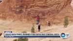 Andersen etched "18" and "R" and "J" as well as a heart in the arch near Moab and then stood next to it for a photo with his family.