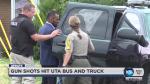 Onboard the Salt Lake City-bound bus, nine passengers and the driver were unharmed, but the bullet that hit the vehicle was “probably about an arm’s distance” from striking someone in the head, Berger said.