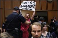 Majority Republicans pushed on, but protesters interrupted throughout the morning, shouting their opposition to Kavanaugh one by one before police removed them from the hearing room.