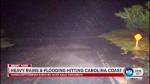 Winds and rain were arriving later in South Carolina, and a few people were still walking on the sand at Myrtle Beach while North Carolina was getting pounded. Heavy rainfall began after dark.