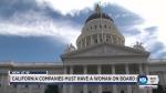 The measure requires at least one female director on the board of each California-based public corporation by the end of next year. Companies would need up to three female directors by the end of 2021, depending on the number of board seats.