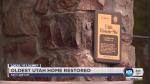 Scores of local residents gathered Friday to watch as the ceremonial ribbon was cut in commemoration of the final restoration of what has been documented as Utah's oldest residence still standing in its original location.