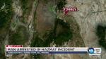 TORREY, Wayne County — A man was arrested after county officials say he created a hazmat situation when he brought a toxic substance to a town hall meeting Thursday night.