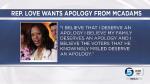 She also asked for an apology from McAdams for "peddling lies."