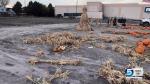 Photos posted to Facebook show broken and smashed pumpkins, scarecrow decorations snapped in half, a huge spider feature crumpled.