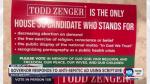 Republican Todd Zenger says in the ad that he is the only House District 36 candidate who stands for "the free exercise of religion, conscience or belief."