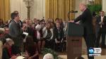 They began sparring after Acosta asked Trump about the caravan of migrants heading from Latin America to the southern U.S. border. When Acosta tried to follow up with another question, Trump said, "That's enough!" and a female White House aide unsuccessfully tried to grab the microphone from Acosta.