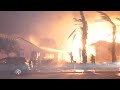 At one burned-out house, flames still smoldered inside what appeared to be a weight room. The rubble included a pair of dumbbells with the rubber melted off and the skeletons of a metal pullup bar and other exercise equipment. The grass and elaborate landscaping all around the brick and stucco home remained an emerald green. Red pool umbrellas were furled near lounge chairs and showed not a singe on them.