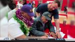 "I'd like to sign my life away and continue my football and education at LSU," he announced into a microphone in front of family and friends in the East High gymnasium.