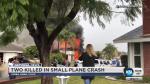 YORBA LINDA, Calif. (AP) — Five people died and two others were injured after a small plane apparently came apart, raining debris across a Southern California neighborhood and igniting a house fire before landing in a backyard, authorities said Sunday.
