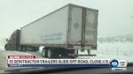 About 15 semitrucks were traveling too fast for winter conditions and spun out on I-15 near Cedar City, according to a tweet from the Utah Highway Patrol.