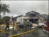 Video showed panicked residents running to the house as flames and dark smoke engulfed it. One man used a garden house to douse a burning wing that landed on the street.