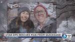 TAYLORSVILLE — A Utah Department of Public Safety helicopter was able to navigate around a winter storm and into a slot canyon Sunday to hoist a man trapped in quicksand to safety.