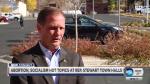 Tattoo artist A. W. Storm Anderson, who owns Art on You Studio next door to the pizza restaurant, thanked Stewart for his stance on socialism. Anderson said some might perceive that because he's an artist, he would lean toward that idea.