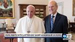 VATICAN CITY — Pope Francis has met with the leadership of The Church of Jesus Christ of Latter-day Saints, the first-such meeting of its kind, on the eve of the dedication of the church's new temple in Rome.