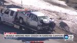 The Silverado crashed into a 2014 Toyota Sienna that was traveling south, UHP said. The Sienna ended up on top of the median, which required emergency officials to close the southbound travel lanes and one northbound lane for several hours, according to UHP.